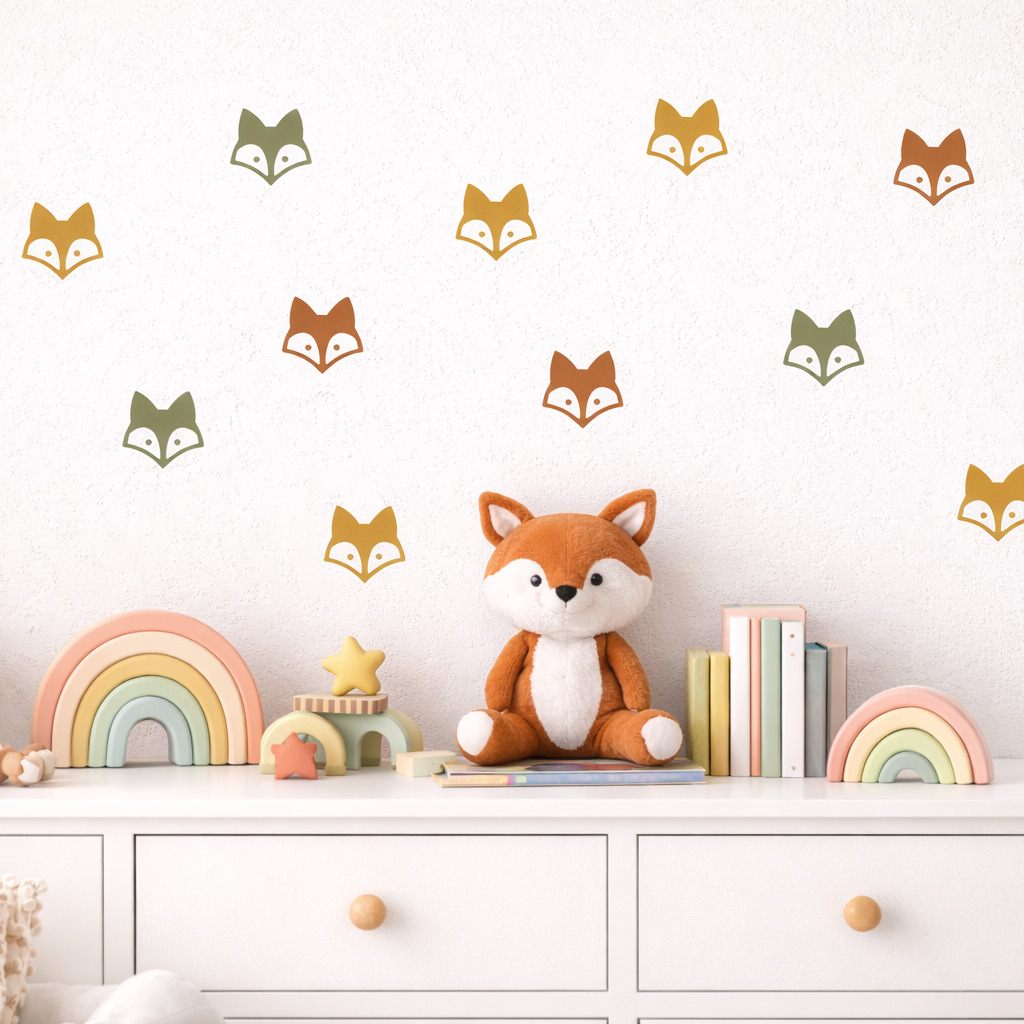 Trendy and adorable, fox wall decals add a touch of style to any room. Use on walls, ceiling, mirrors, windows and more. Remove easily with no sticky residue. Create an accent wall in your nursery or place them around your kids room- put them up any way you like!