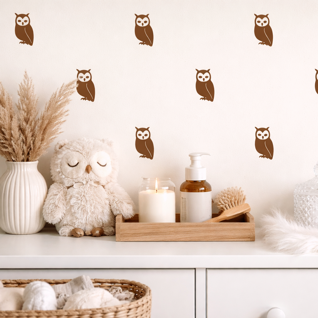 Make your own wall pattern anywhere you want with these adorable owl decals. Owls create a whimsical and classic style that's timeless. When you want to remove them, simply peel them off. Perfect for renters.