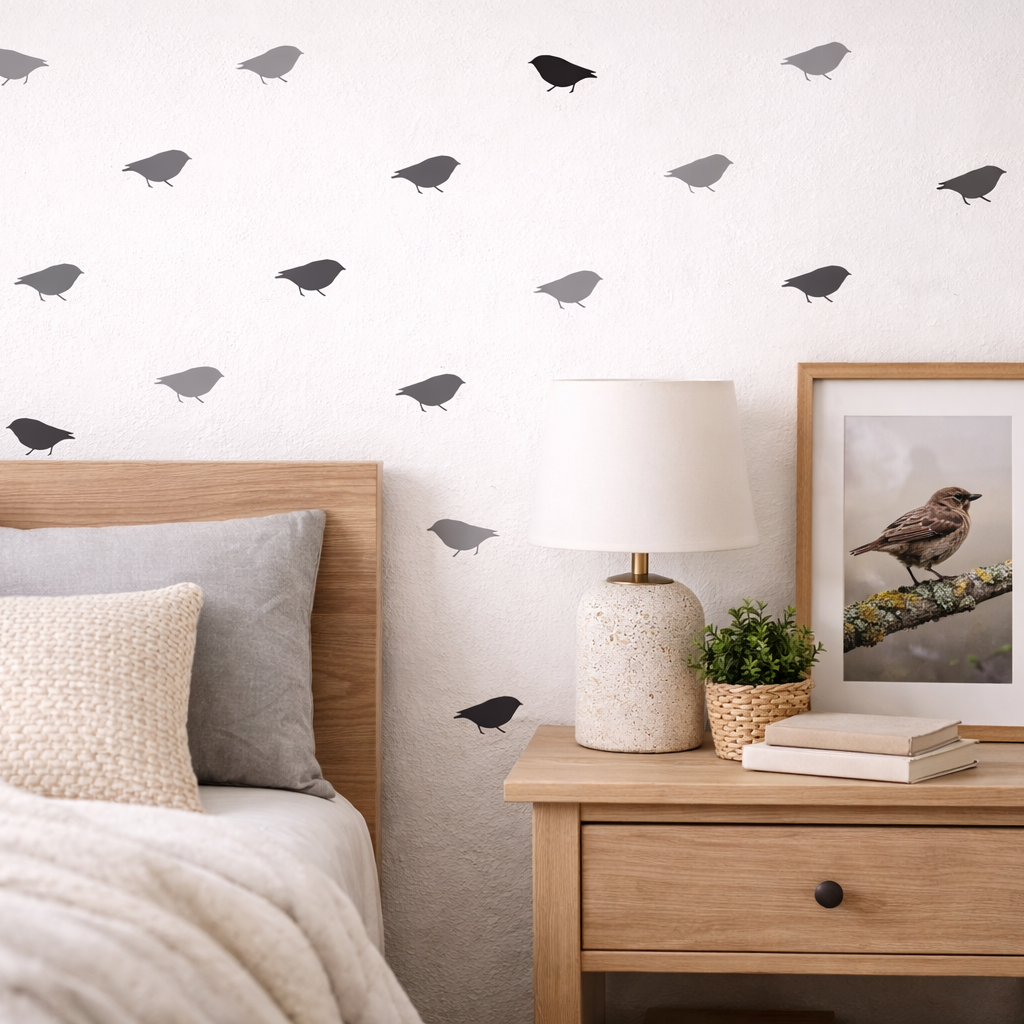 A bird watchers dream! Bring nature indoors with these Sparrow wall decals! Put them up and peel them off with ease. Safe for painted surfaces. Use them in windows to keep the real birds safe!