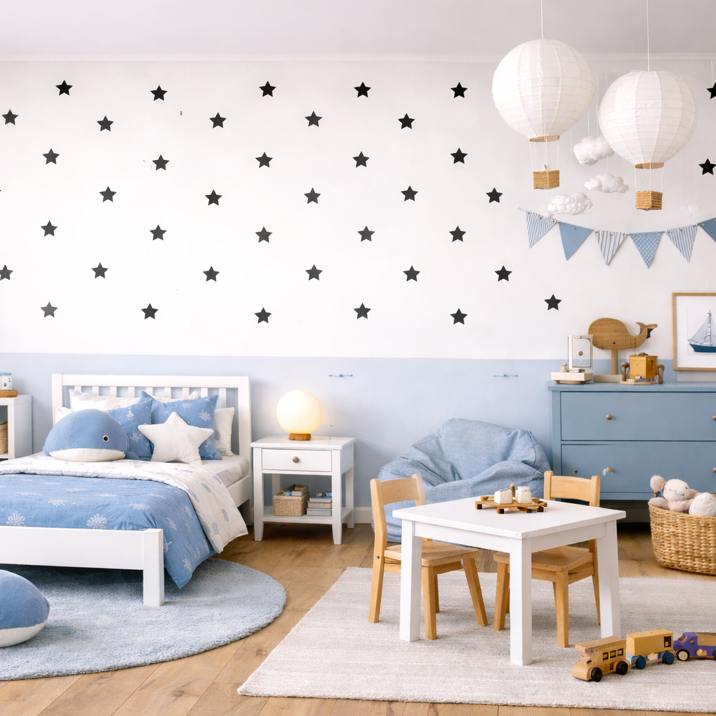 These peel and stick stars are perfect for creating an accent wall or ceiling. Stick them on virtually any smooth surface. Remove easily with no sticky residue. Perfect for renters or kids rooms.